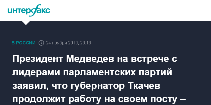 Президент Медведев на встрече с лидерами парламентских партий заявил, что губернатор Ткачев продолжит работу на своем посту – Сурков