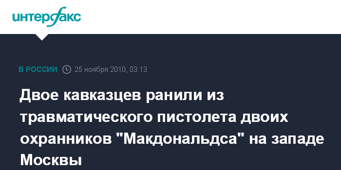 Двое кавказцев ранили из травматического пистолета двоих охранников "Макдональдса" на западе Москвы
