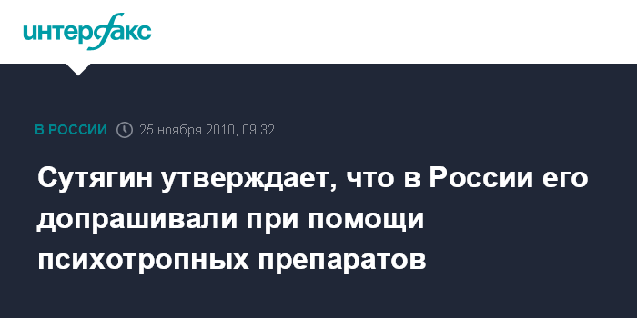Сутягин утверждает, что в России его допрашивали при помощи психотропных препаратов