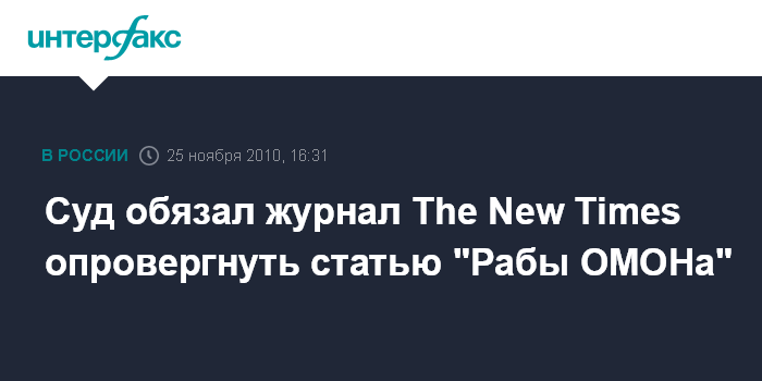 Как передает корреспондент ‘‘Интерфакса‘‘, суд обязал издание опровергнуть статью "Рабы ОМОНа", как несоответствующую действительности.