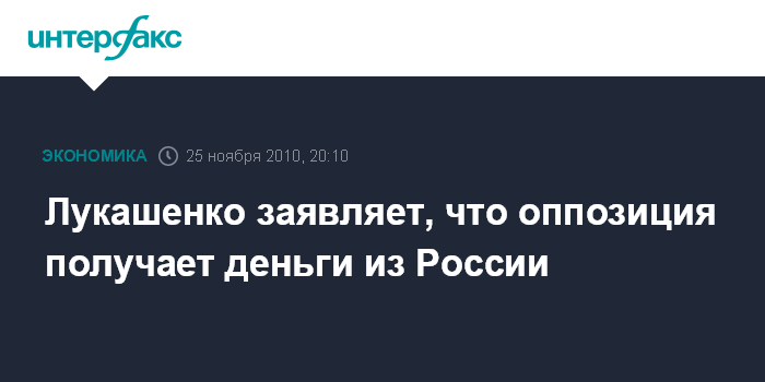 Лукашенко заявляет, что оппозиция получает деньги из России