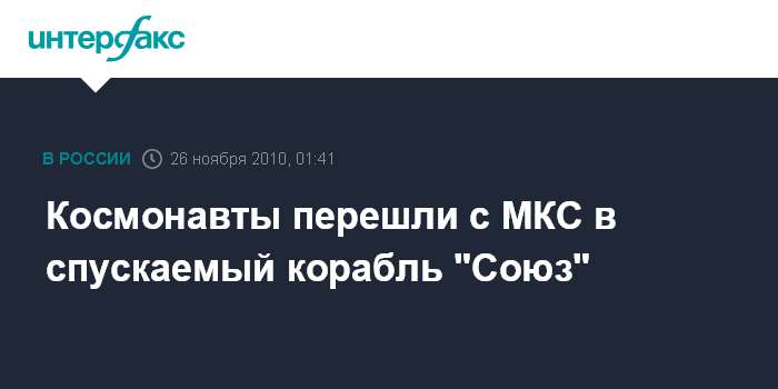 Москва. 26 ноября. ИНТЕРФАКС-АВН - Российский космонавт Федор Юрчихин и астронавты НАСА Даглас Уилок и Шеннон Уокер перешли в космический корабль "Союз ТМА-19" и закрыли переходной люк на Международную космическую станцию (МКС).