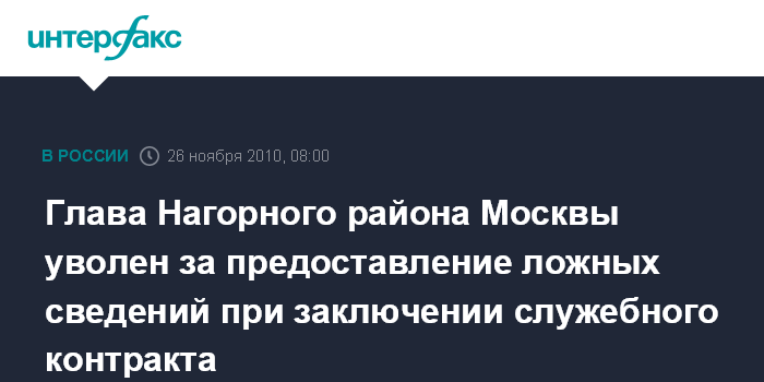 Глава Нагорного района Москвы уволен за предоставление ложных сведений при заключении служебного контракта