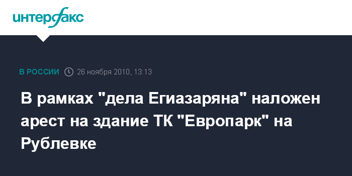 В рамках "дела Егиазаряна" наложен арест на здание ТК "Европарк" на Рублевке