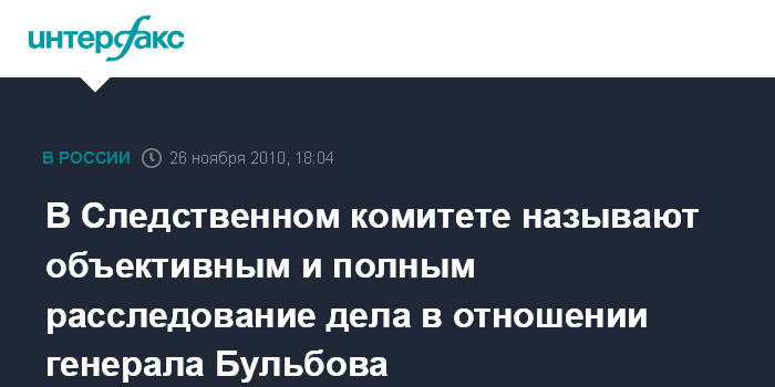 Москва. 26 ноября. INTERFAX.RU - В Следственном комитете РФ заявили, что расследование уголовного дела в отношении генерала ФСКН Александра Бульбова, которым занимались следователи Главного следственного управления ведомства, было проведено максимально объективно.
