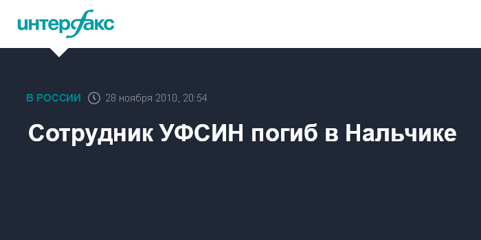Нальчик. 28 ноября. ИНТЕРФАКС-ЮГ - В Нальчике в воскресенье вечером был убит сотрудник Управления ФСИН по Кабардино-Балкарии.