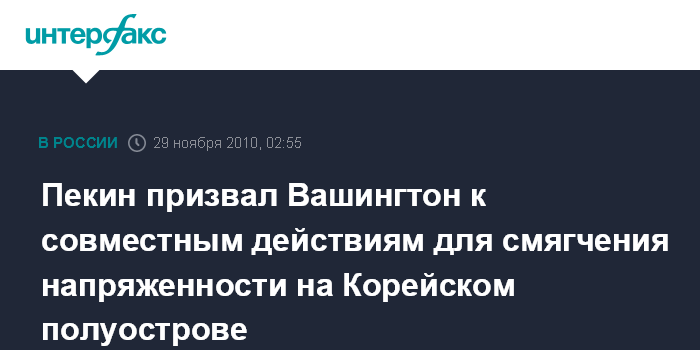 Китайский дипломат подчеркнул: "Сохранение мира и стабильности на полуострове является отправной точкой всех действий Китая. Все заинтересованные стороны должны приложить усилия к возобновлению переговоров (шестисторонних по ядерной проблеме Кореи - ИФ), чтобы решить проблемы путем диалога".