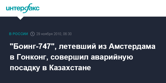 "Боинг-747", летевший из Амстердама в Гонконг, совершил аварийную посадку в Казахстане