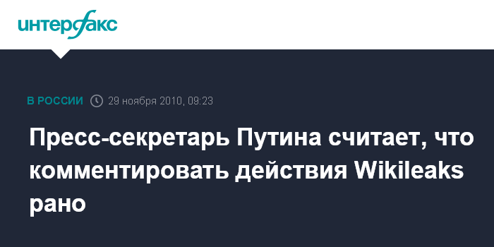 Пресс-секретарь Путина считает, что комментировать действия Wikileaks рано