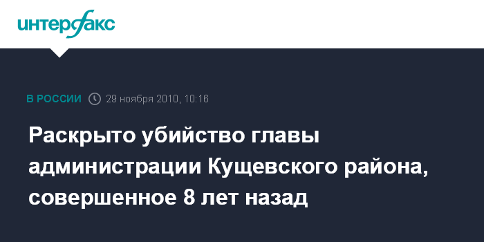 Раскрыто убийство главы администрации Кущевского района, совершенное 8 лет назад