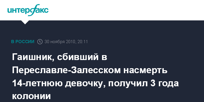 Гаишник, сбивший в Переславле-Залесском насмерть 14-летнюю девочку, получил 3 года колонии