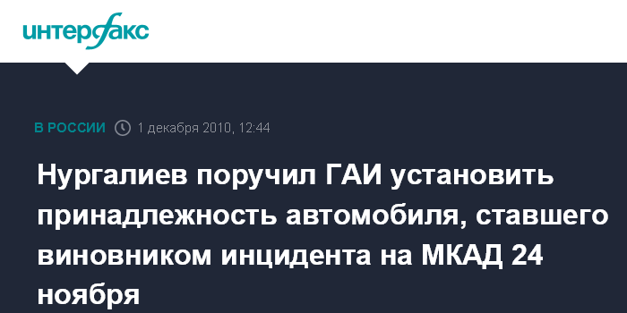 Нургалиев поручил ГАИ установить принадлежность автомобиля, ставшего виновником инцидента на МКАД 24 ноября