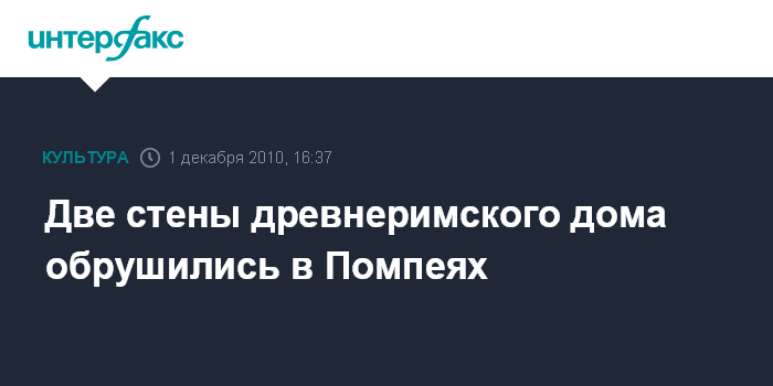 Рим. 1 декабря. INTERFAX.RU - В археологическом комплексе Помпеи в среду обрушились две стены так называемого "дома моралиста", сообщила в среду итальянская газета La Repubblica.