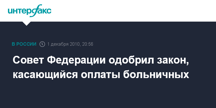 Москва. 1 декабря. INTERFAX.RU - Совет Федерации в среду одобрил закон, которым изменяется действующий порядок начисления больничных по временной нетрудоспособности, по беременности и родам, ежемесячного пособия по уходу за ребенком.