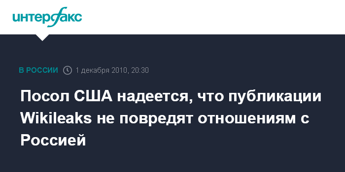 Посол США надеется, что публикации Wikileaks не повредят отношениям с Россией