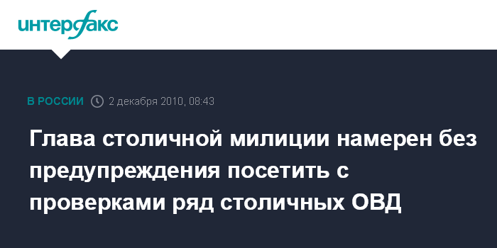 Глава столичной милиции намерен без предупреждения посетить с проверками ряд столичных ОВД