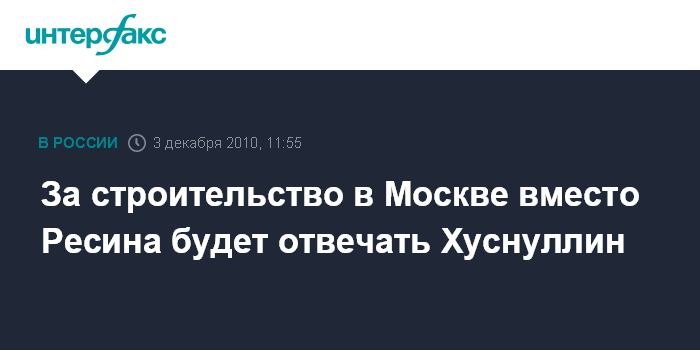 За строительство в Москве вместо Ресина будет отвечать Хуснуллин