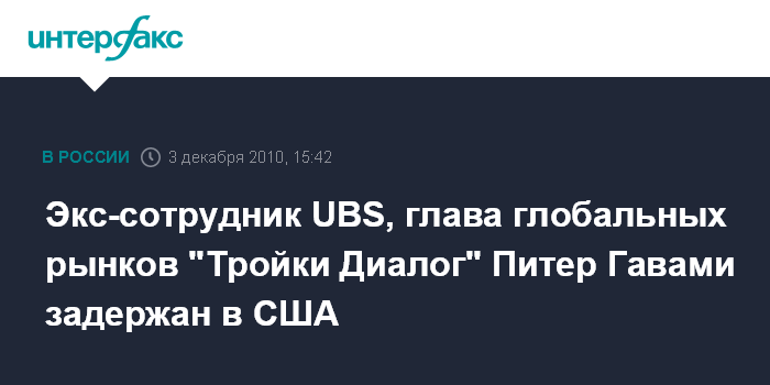 Экс-сотрудник UBS, глава глобальных рынков "Тройки Диалог" Питер Гавами задержан в США