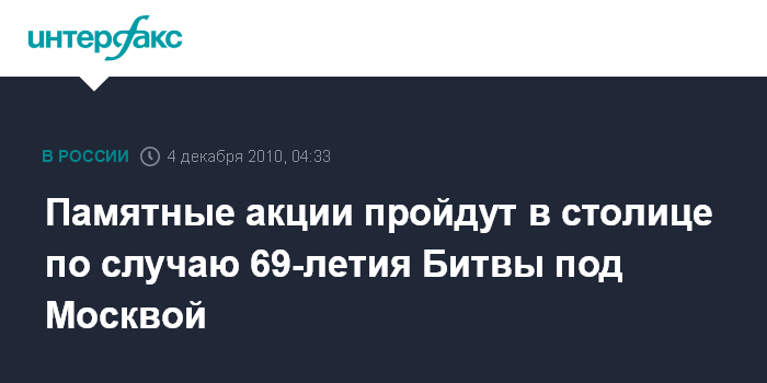 Памятные акции пройдут в столице по случаю 69-летия Битвы под Москвой