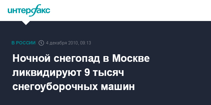 Москва. 4 декабря. ИНТЕРФАКС-МОСКВА - Московские коммунальные службы ликвидируют последствия ночного снегопада: в столице работает около 9 тыс. единиц спецтехники и более 5 тыс. человек, сообщил "Интерфаксу" пресс-секретарь комплекса городского хозяйства Москвы Игорь Пергаменщик.