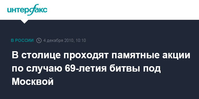 В столице проходят памятные акции по случаю 69-летия битвы под Москвой