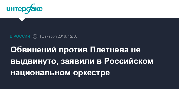 Обвинений против Плетнева не выдвинуто, заявили в Российском национальном оркестре
