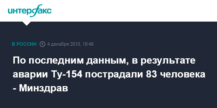 По последним данным, в результате аварии Ту-154 пострадали 83 человека - Минздрав