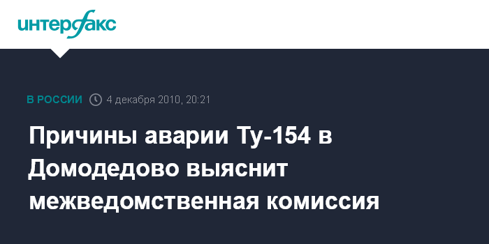 Причины аварии Ту-154 в Домодедово выяснит межведомственная комиссия