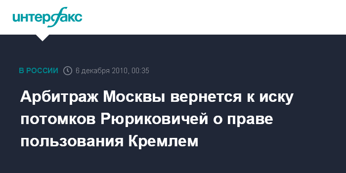 Арбитраж Москвы вернется к иску потомков Рюриковичей о праве пользования Кремлем