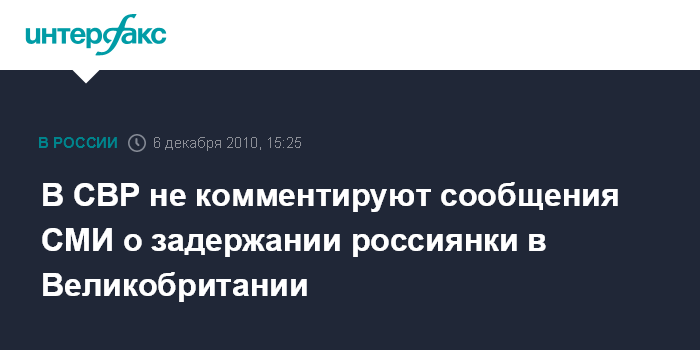 В СВР не комментируют сообщения СМИ о задержании россиянки в Великобритании
