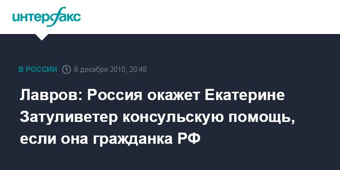 Лавров: Россия окажет Екатерине Затуливетер консульскую помощь, если она гражданка РФ