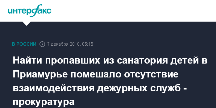Найти пропавших из санатория детей в Приамурье помешало отсутствие взаимодействия дежурных служб - прокуратура