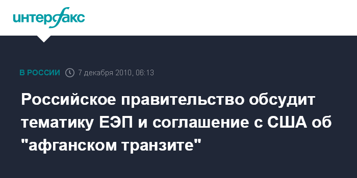 Российское правительство обсудит тематику ЕЭП и соглашение с США об "афганском транзите"