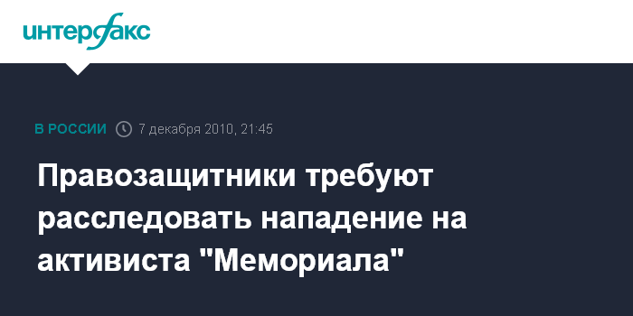 Правозащитники требуют расследовать нападение на активиста "Мемориала"