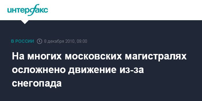 Идущий в Москве снег привел к резкому снижению средней скорости на магистралях города. Образовавшаяся на дорогах снежная каша с наледью вызвала увеличение числа мелких аварий на дорогах. Автомобили стоят в многокилометровых пробках из-за аварийных машин, частично перекрывающих движение.