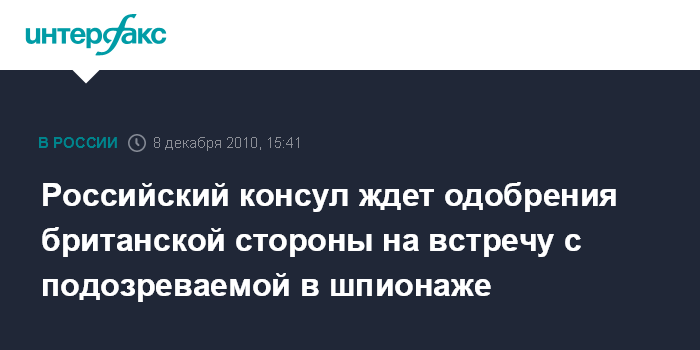 Москва/Лондон. 8 декабря. INTERFAX.RU - Консул посольства России в Лондоне намерен встретиться с задержанной по подозрению в шпионаже в пользу РФ россиянкой Екатериной Затуливетер.