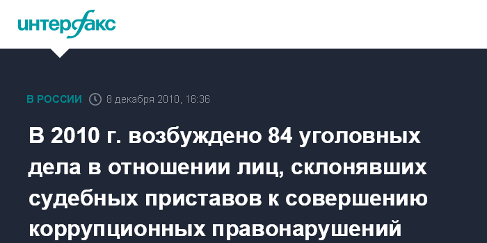 В 2010 г. возбуждено 84 уголовных дела в отношении лиц, склонявших судебных приставов к совершению коррупционных правонарушений
