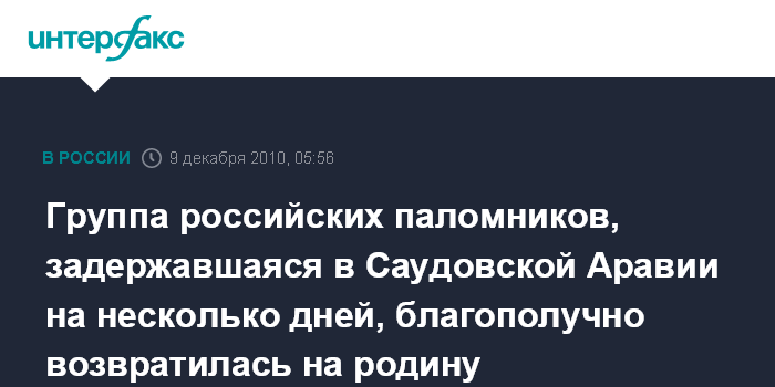 Группа российских паломников, задержавшаяся в Саудовской Аравии на несколько дней, благополучно возвратилась на родину