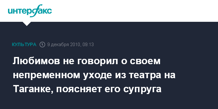 Москва. 9 декабря. INTERFAX.RU - Режиссер Юрий Любимов в своем заявлении, распространенном в СМИ, говорил фактически о необходимости реформ в российских театрах, а не о своем непременном уходе из театра на Таганке, он продолжает работать, сообщила его жена Каталин Любимова.
