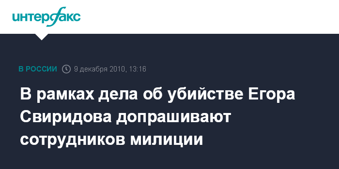 В рамках дела об убийстве Егора Свиридова допрашивают сотрудников милиции