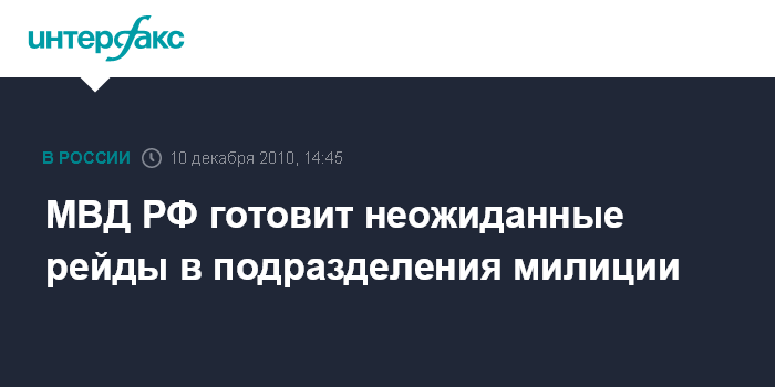 Москва. 10 декабря. INTERFAX.RU - Милицейское руководство в декабре проведет внезапные рейды в региональные подразделения органов внутренних дел.