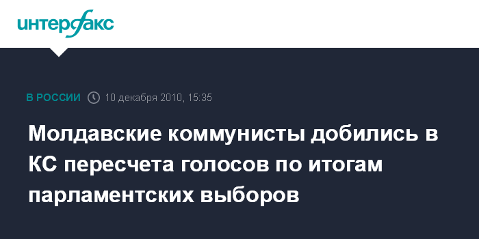 Кишинев. 10 декабря. INTERFAX.RU - Конституционный суд Молдавии постановил полностью пересчитать голоса избирателей на парламентских выборах 28 ноября.