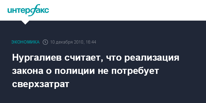 Нургалиев считает, что реализация закона о полиции не потребует сверхзатрат