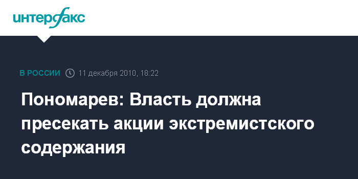 Пономарев: Власть должна пресекать акции экстремистского содержания