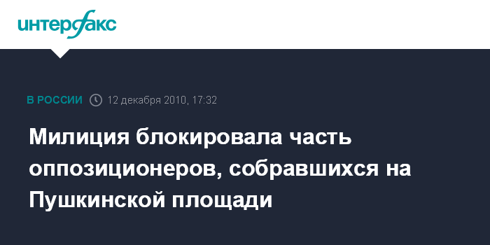 Милиция блокировала часть оппозиционеров, собравшихся на Пушкинской площади