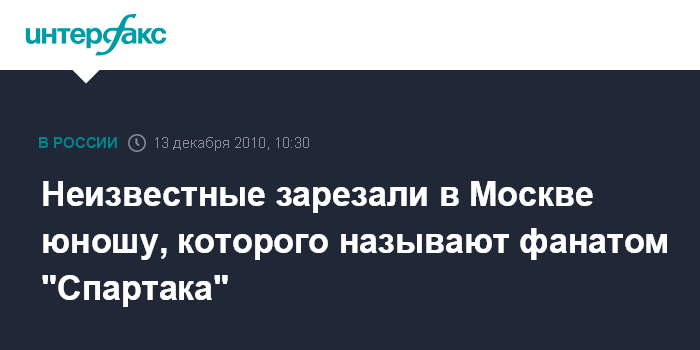 Неизвестные зарезали в Москве юношу, которого называют фанатом "Спартака"