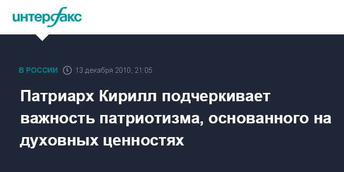 Москва. 13 декабря. INTERFAX.RU - Патриарх Московский и всея Руси Кирилл призвал общество к патриотизму, основанному на христианской нравственности.