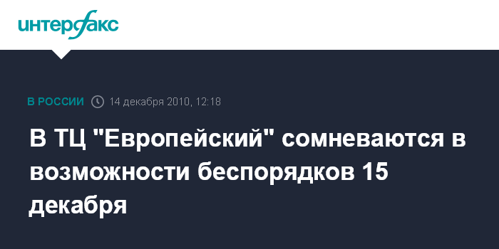В ТЦ "Европейский" сомневаются в возможности беспорядков 15 декабря
