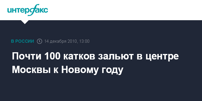 14 декабря. INTERFAX.RU - На территории Центрального округа столицы к Новому году зальют 93 катка, рассказали "Интерфаксу" в пресс-службе префектуры округа во вторник.