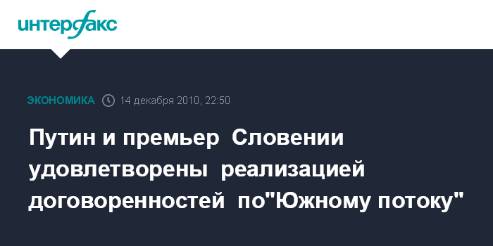 Путин и премьер Словении удовлетворены реализацией договоренностей по"Южному потоку"